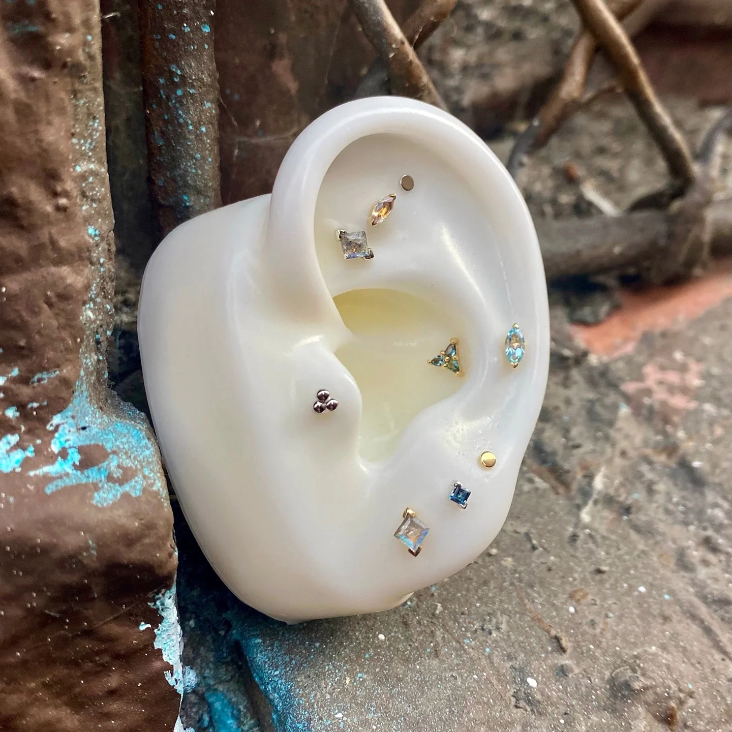 Sweet + lovable, you can never go wrong with these three pear-shaped London Blue Topaz. The gemstones we feature are specially chosen to be the perfect cut and with a nice, vibrant color that will bring your jewelry to a whole new level. 3 little pears fits perfectly in the tragus, lobe, conch, and rook. Adorn with your other jewelry to create a glittering focal point!