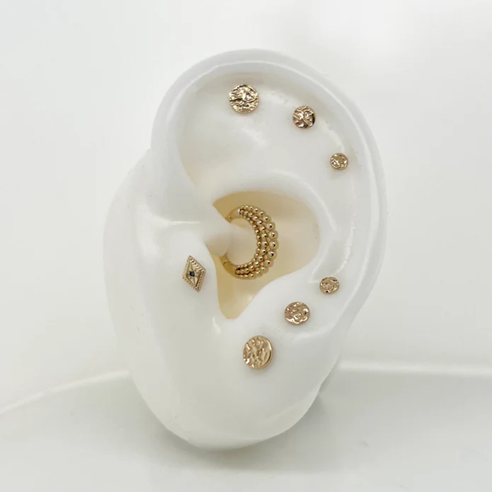 Low Profile! Everyday luxury at an affordable price. Perfect for any modern + minimalistic piercing style that will bring any look up to date in a flash!