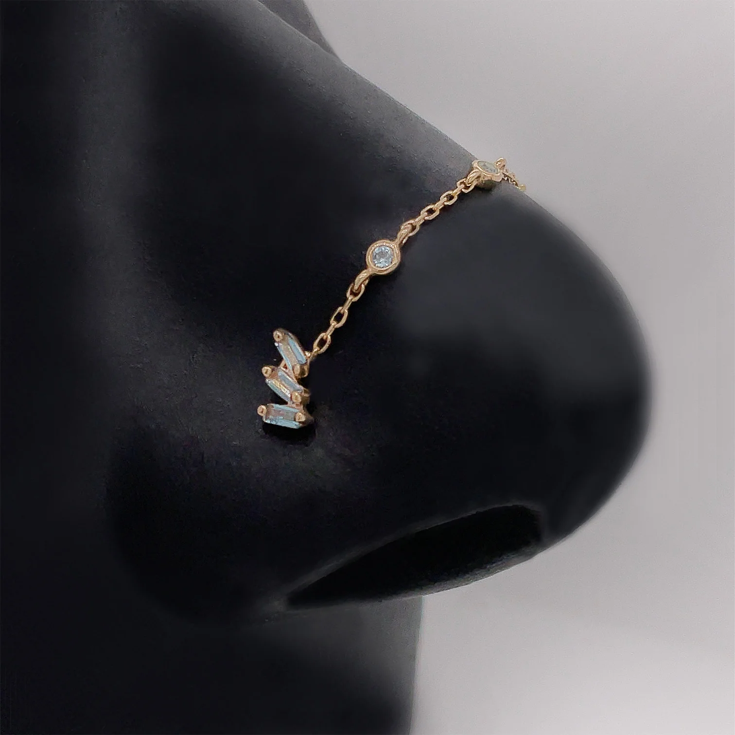 Brilliant cascading London Blue Topaz gemstones adorned in Solid 14kt Gold — Staxx is back and brighter than ever before in two new gemstone additions. Style this piece beautifully in lobe, helix, tragus, conch, lip, and nose piercings.